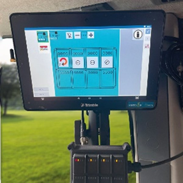 The connection via the ISOBUS InCab socket of the tractor is toolless and can be done in just a few seconds. Each individual button has colored status LEDs which show the selected level.