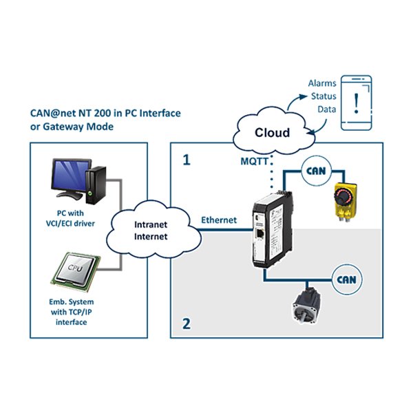 The Ixxat CAN@net NT can be used as PC interface, as CAN-Ethernet-CAN bridge or as CAN Ethernet gateway – all in one device.